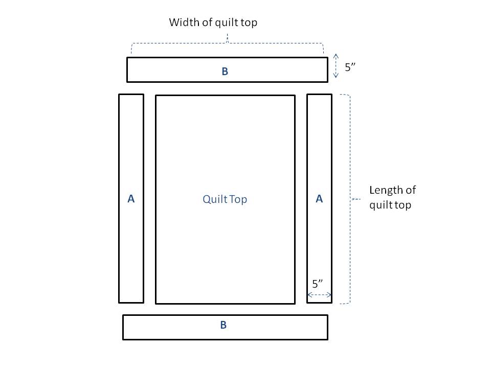 Use the diagram below (click to enlarge) to create a border using the 5×18 inch and 5×22 inch strips.