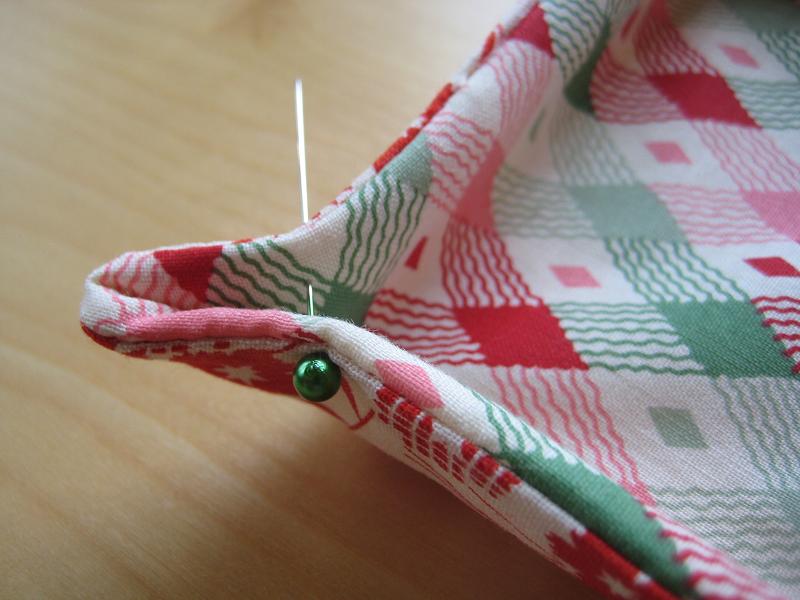 Step 8 β As shown below, pinch each corner so that a 1β wall forms on each side. Pin the corners to keep them pinched. (Tip: put a coaster in the center before pinching the corners of the coaster cozy to help give you even walls)