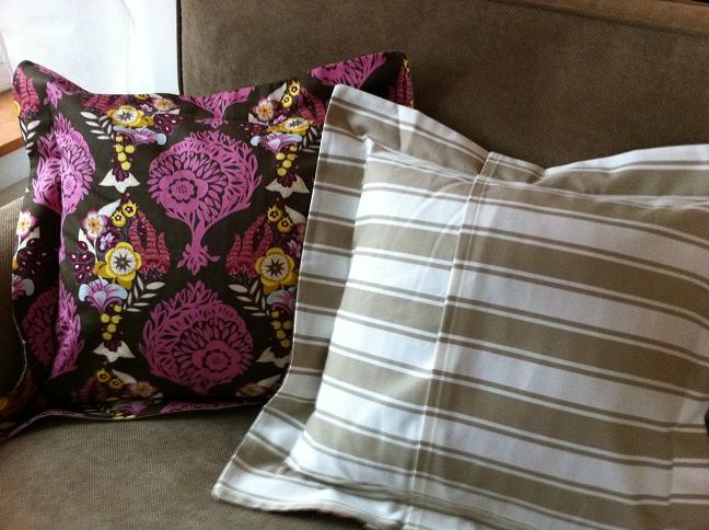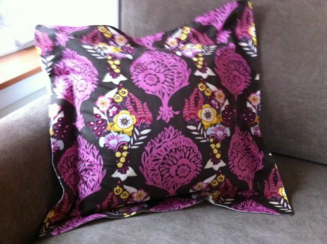 So the proper name for this type of pillow cover is “flanged pillow”, but I think Ravioli fits the look better. 🙂 As mentioned in an earlier blog post, we got a new couch and therefore my new mission was to populate it with pillows. Well, here are the first two. These are the first ravioli pillows I’ve made and they’re quite easy! I got the idea from my local quilt shop in Ballard, The Quilting Loft. They had a sample pillow but made with a different colored fabric. I used the same backing fabric that was used with the pillow at the store.