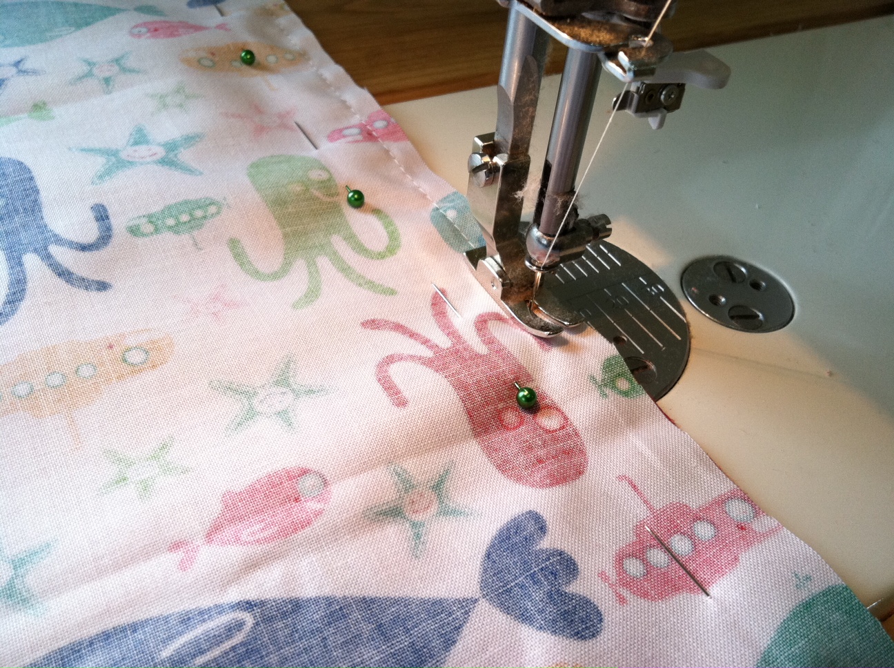 @ jabeybaby – the fabric with the traveling gnomes is called "Gnome-some Traveller" by Michael Miller. You can find it online if you search 'gnome fabric' on Etsy under 'supplies.' I don't remember where I got the ocean-themed fabric…I think it was probably by Robert Kaufman, but it's an older line.