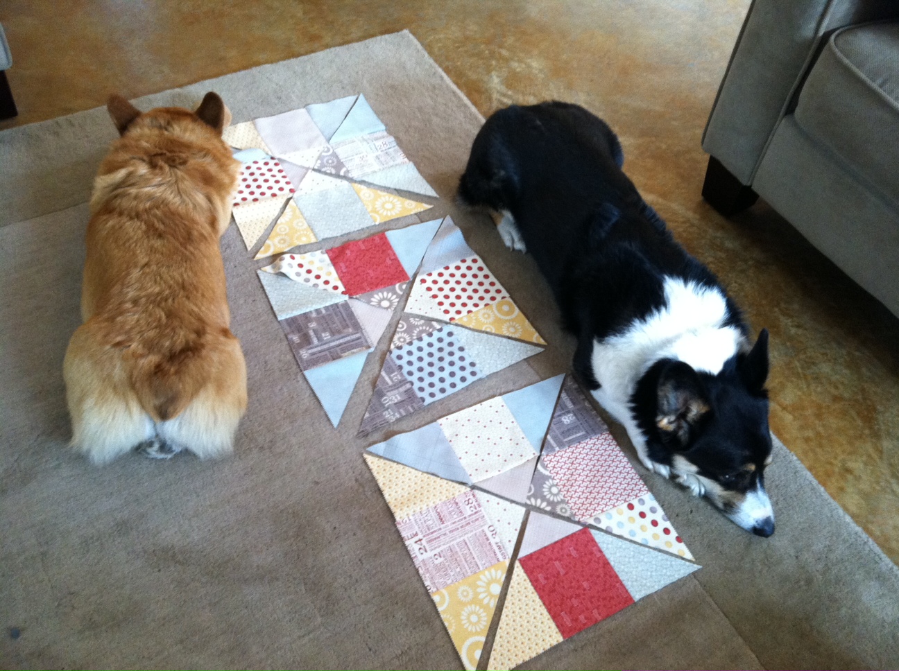Hi Jera–I came here from Stash Manicure and decided to stay, and follow, when I saw the picture of Paige rolling on your blocks. I have so many pictures of our dogs or cats lounging on my quilts-in-progress. After the quilt is finished, that makes it especially dear, at least in our house.